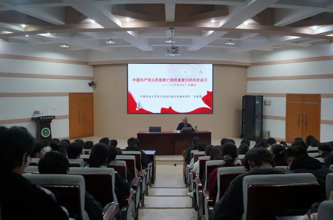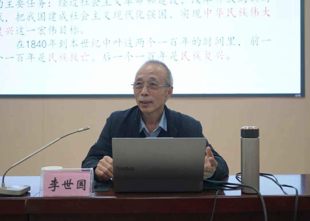 报告中,李世国结合大量珍贵史实,以“两个一百年”奋斗目标为逻辑主线,从开天辟地的“救国大业”、改天换地的“兴国根基”、翻天覆地的“富国大业”、惊天动地的“强国征程”等方面介绍了党的百年奋斗历程,深刻阐释了“红色政权来之不易”、“新中国来之不易”。他精准解读了“三个为什么”的时代之问:中国共产党为什么“能”、中国特色社会主义为什么“好”、马克思主义为什么“行”,深刻阐释了坚持中国特色社会主义的历史必然性与时代价值。